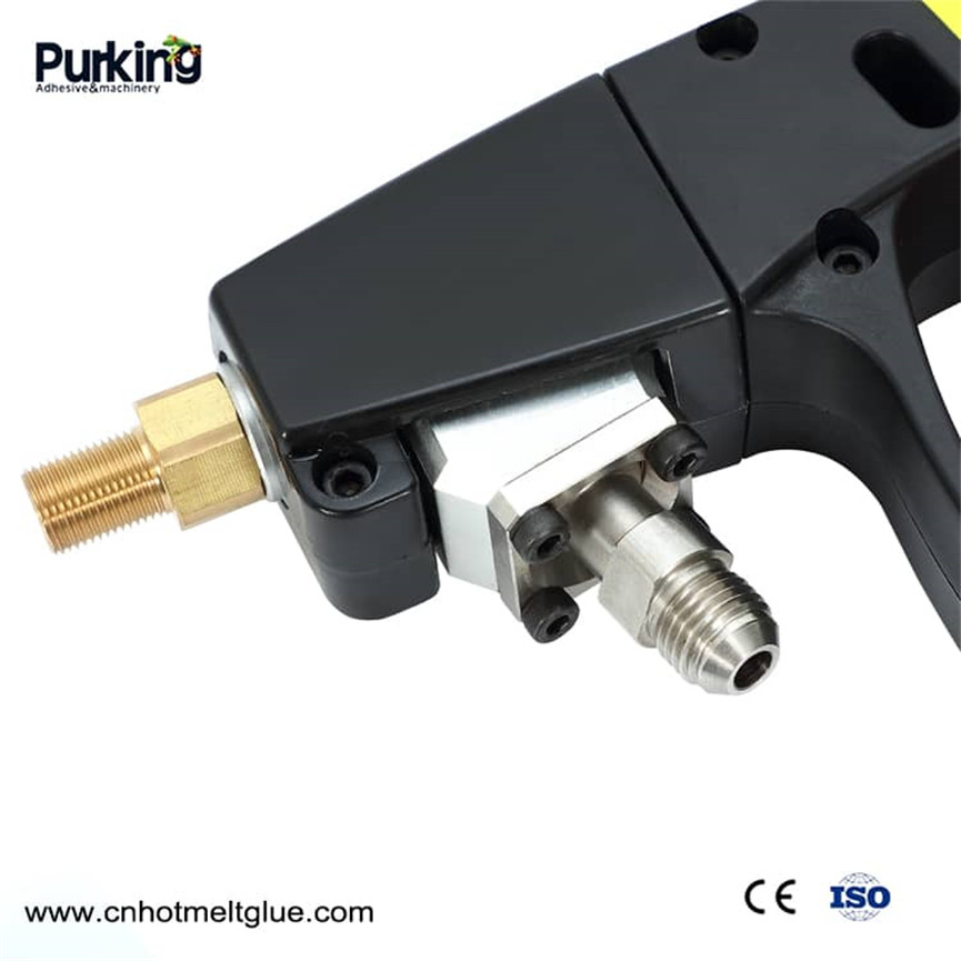 Përgjigje: Arma jonë e ngjitësit të shkrirë të nxehtë miraton një dizajn preciz dhe unik të grykës së fibrave, strukturë të arsyeshme dhe të thjeshtë, të lehtë për t'u pastruar, kontroll i saktë i ngjitësit me spërkatje, efekt i shkëlqyer atomizimi, ngjitës me spërkatje filmi me të vërtetë jo të endura, të shpuar pa osmozë të kundërt.